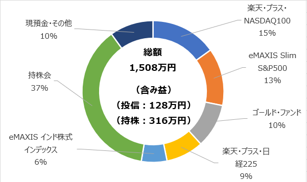 不透明な国際情勢への備えとして。現物ではなく投信で保有し、管理を簡略化しています。